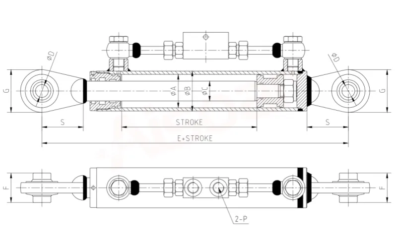 | ΦA(Diámetro del Cilindro) | E | ΦB | ΦC | ΦD | F | G | S | P |