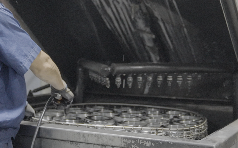Cada una de las piezas del cilindro se limpia con un limpiador ultrasónico.