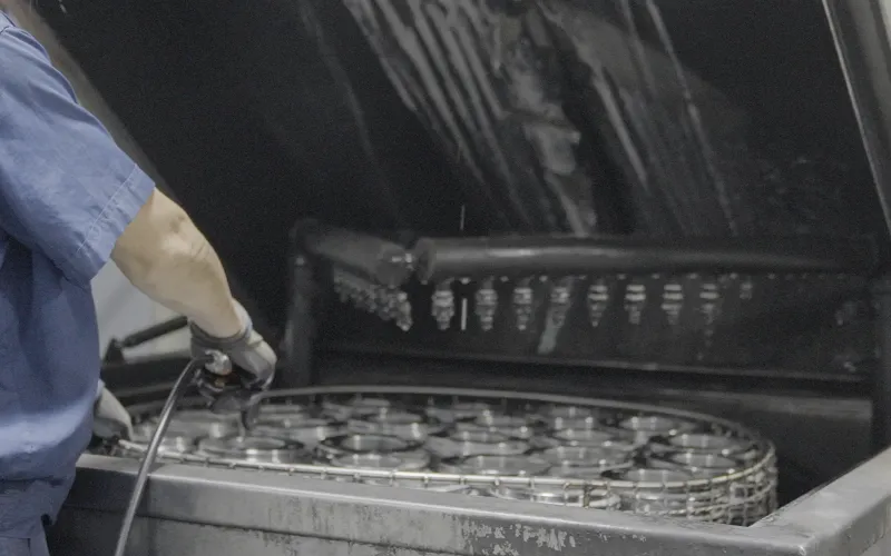 Cada pieza del cilindro se limpia con una limpiadora ultrasónica.