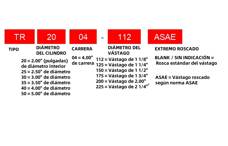 Aquí podemos ver datos dimensionales importantes de los cilindros TR