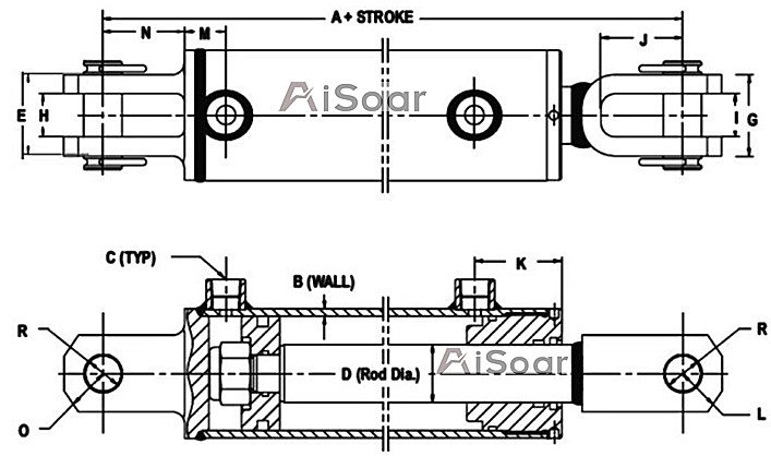 AiSoar Hydraulics ofrece la serie WCT de cilindros hidráulicos soldados con montaje de ojo transversal en ambos extremos del vástago y la tapa, disponibles en una amplia variedad de diámetros y longitudes de carrera.